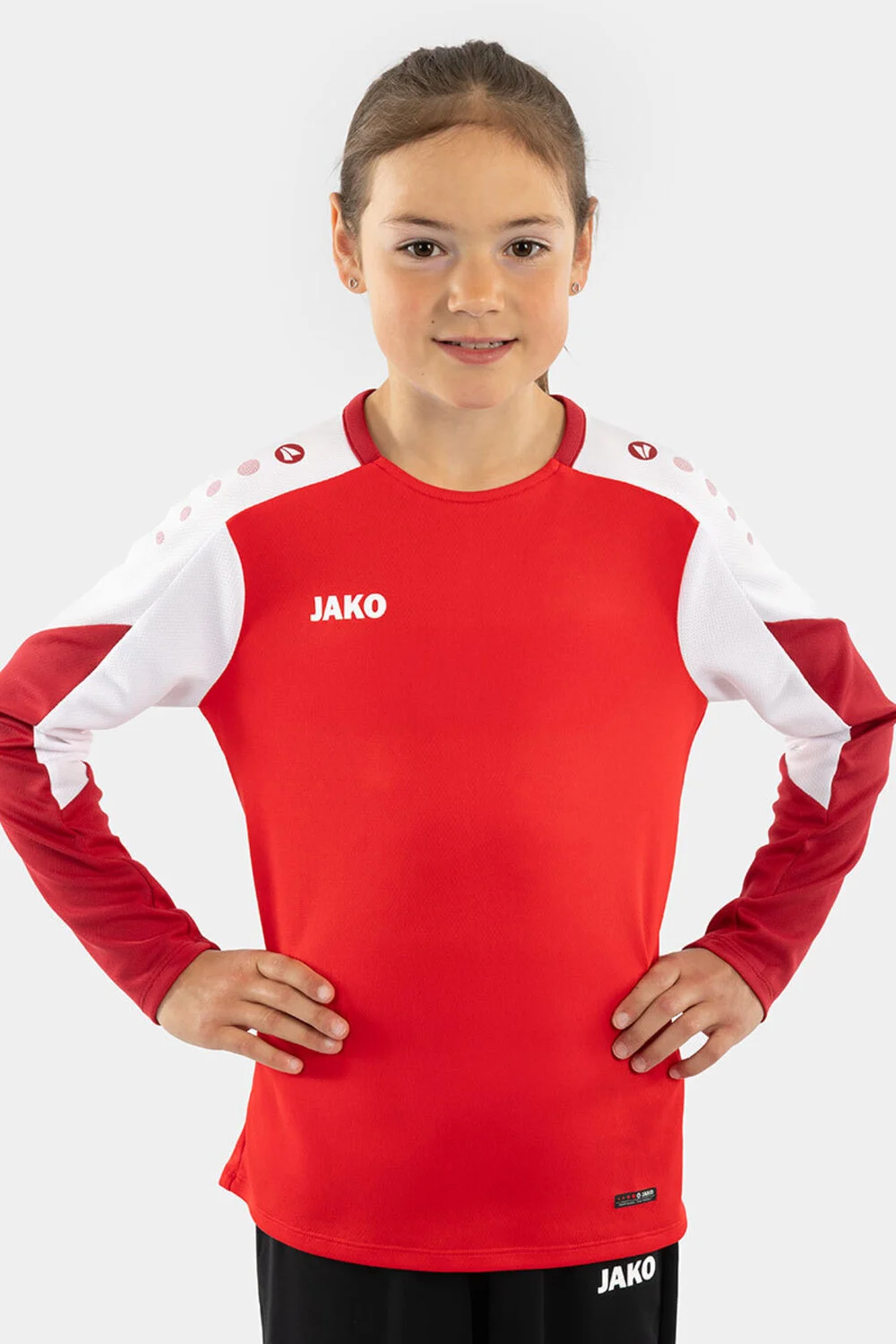 De JAKO Longsleeve Dynamic Junior van JAKO is een sportief kinder longsleeve shirt dat ideaal is voor teams, training en schoolactiviteiten. Het shirt heeft een comfortabele pasvorm met contrasterende details op kraag en mouwen voor een dynamische uitstraling. De lichte stof van 100% gerecycled polyester met Keep Dry technologie is ademend en perfect om te bedrukken of te borduren met een logo.