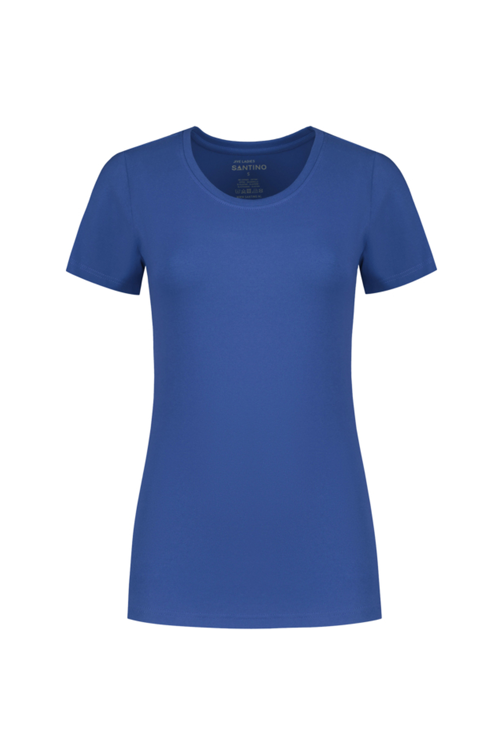 Het Santino Jive Ladies T-shirt is een dames T-shirt met ladies fit, korte mouwen en een ronde hals met smalle ribkraag. De single jersey stof van 95% katoen en 5% elastaan (180 g/m²) geeft een zachte stretch en comfortabele pasvorm. Ideaal voor bedrijfskleding, teams en promotie. Dankzij het gladde oppervlak is dit Santino shirt perfect geschikt om te bedrukken of borduren met een logo of bedrijfsnaam.